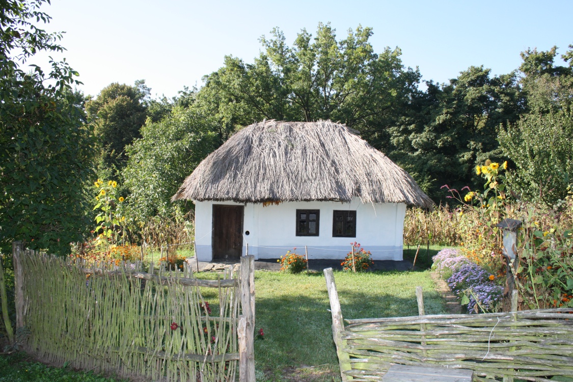 A typical house for poor peasants, with two rooms (house and veranda). Most of the buildings from this area are made of logs having different diameters; the walls are covered with clay on both sides. The four-sided roof is covered with reed. Most of the time, these houses lacked chimneys in order to avoid a high tax and that is why they were called “half smoking”.