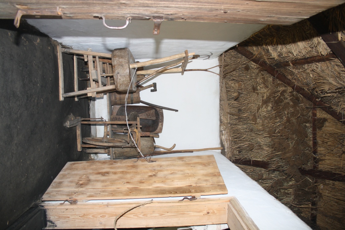 The inside of the house is basic: only the household tools and the most necessary objects are included. The loom was placed in the middle of the house; the women weaved the fabric for domestic needs, for house decoration and for clothing. In the hall, the peasants kept their grinders, the tools for flax and hemp processing as well as other daily-used tools.