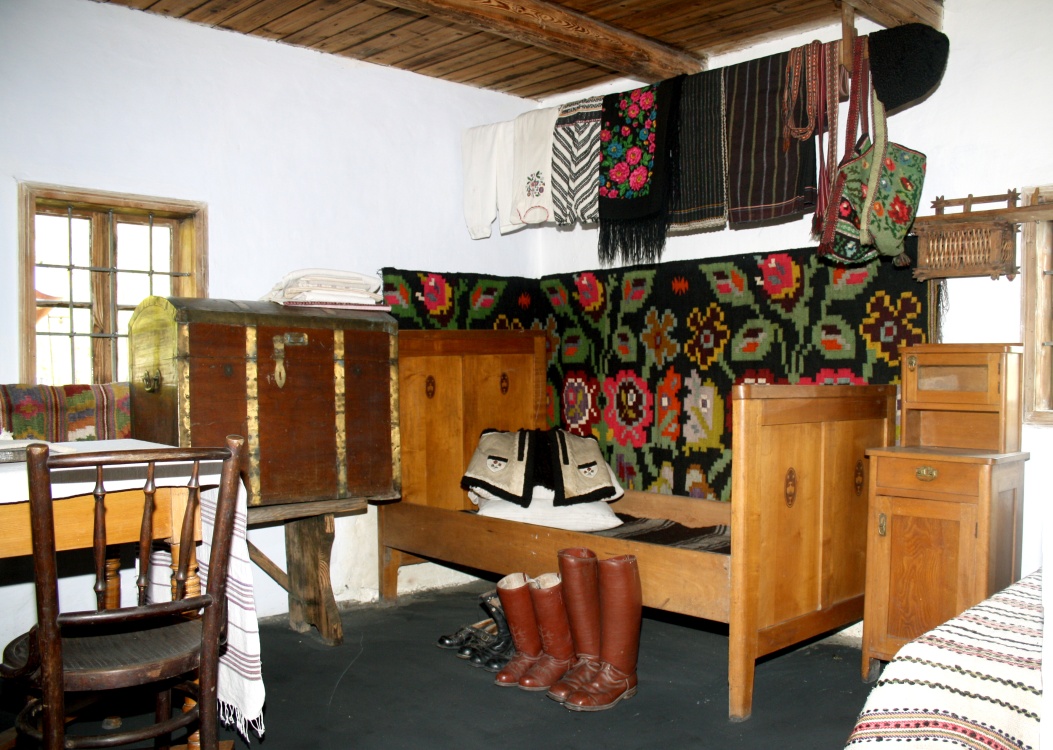 Public building where the inhabitants would get together to socialize, to listen to the local news and to drink. This kind of buildings was not only common inside the village, but also at crossroads. The building is L-shaped. It has three rooms (bar, cellar and living room). Every room has the interiors refurbished: the bar – a wooden grill for food and tools, table with benches; in the cellar – different tools; in the living room of the bar owner – traditional equipment, plus other necessary objects. In these bars, sales or loans agreements used to be signed. Very often, the peasants owed large amounts of money to the bar owner and would ruin themselves.
