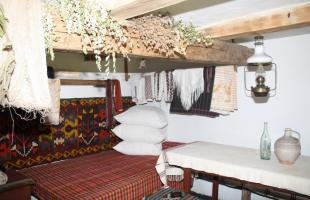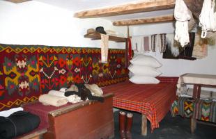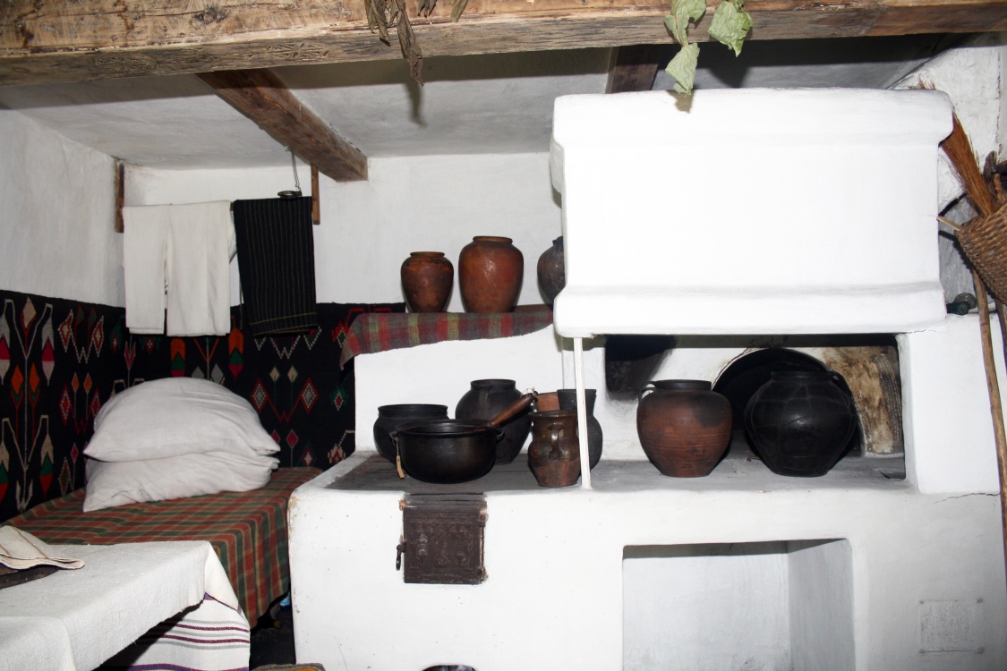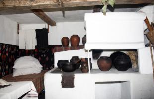 The dwelling has tree rooms: the living room includes the traditional stove, the bed, the place for clothes and the table with the tableware, the wooden table with benches, the corner with icons; in the main room – the chests with festive clothes, woven carpets, the table covered with a tablecloth, medical herbs; on the hall – the chimney and various household tools.