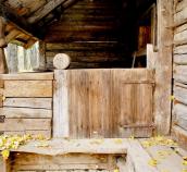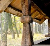 Хата Гологошка (комуна Садова). Це тип житла специфічного для жителів вищої зони Буковини, типу приміщення-хороми. Спостерігаємо поділ хоромів на дві частини для того щоб вмістилися комора та павільйон, маючи роль для захисту від негоди при вході в житло, з призьбою із масивних колод. Простора кімната була призначена для житла і кухні. Доступ до павільйону декорований мотивами зооморфною різьбою стовпа воріт та геометричними мотивами стовпця, що підтримує дашок павільйону.