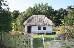 A typical house for poor peasants, with two rooms (house and veranda). Most of the buildings from this area are made of logs having different diameters; the walls are covered with clay on both sides. The four-sided roof is covered with reed. Most of the time, these houses lacked chimneys in order to avoid a high tax and that is why they were called “half smoking”.