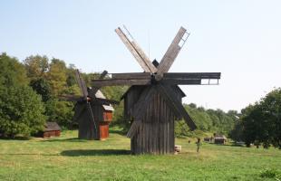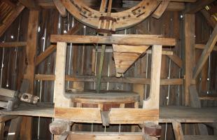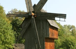 Traditional production equipment in the rural area of Eastern Bucovina. Examples of folk architecture where the craftsmen showed their skills, harmoniously combining architectural shapes with the use of natural forces. Endowed with six wings, the multi-floored windmills, with extended space on the second floor is specific for Bucovina. The main body of this windmill together with its wings was spinning around its own axis – a massive pillar deeply buried under ground. At the first level it was the store house, at the second level – the flour grinding mechanism. This is the type of mill the peasants from Bucovina used to grind their cereals for centuries. Some of them worked until the 1960th.