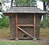 Будівля побудована на основі підошви, обрамляє сплетіння із лісового горіха на вертикальних вилах. Має чотирьохскатну покрівлю покритою драницею. Одна із частин даху мобільна для доставки кукурудзи, а спорожнення робиться з нижньої частини, де існує отвір.